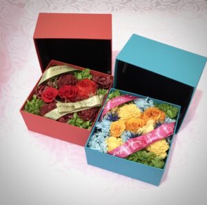さて本日のご紹介は 赤色と水色BOXの華やか
