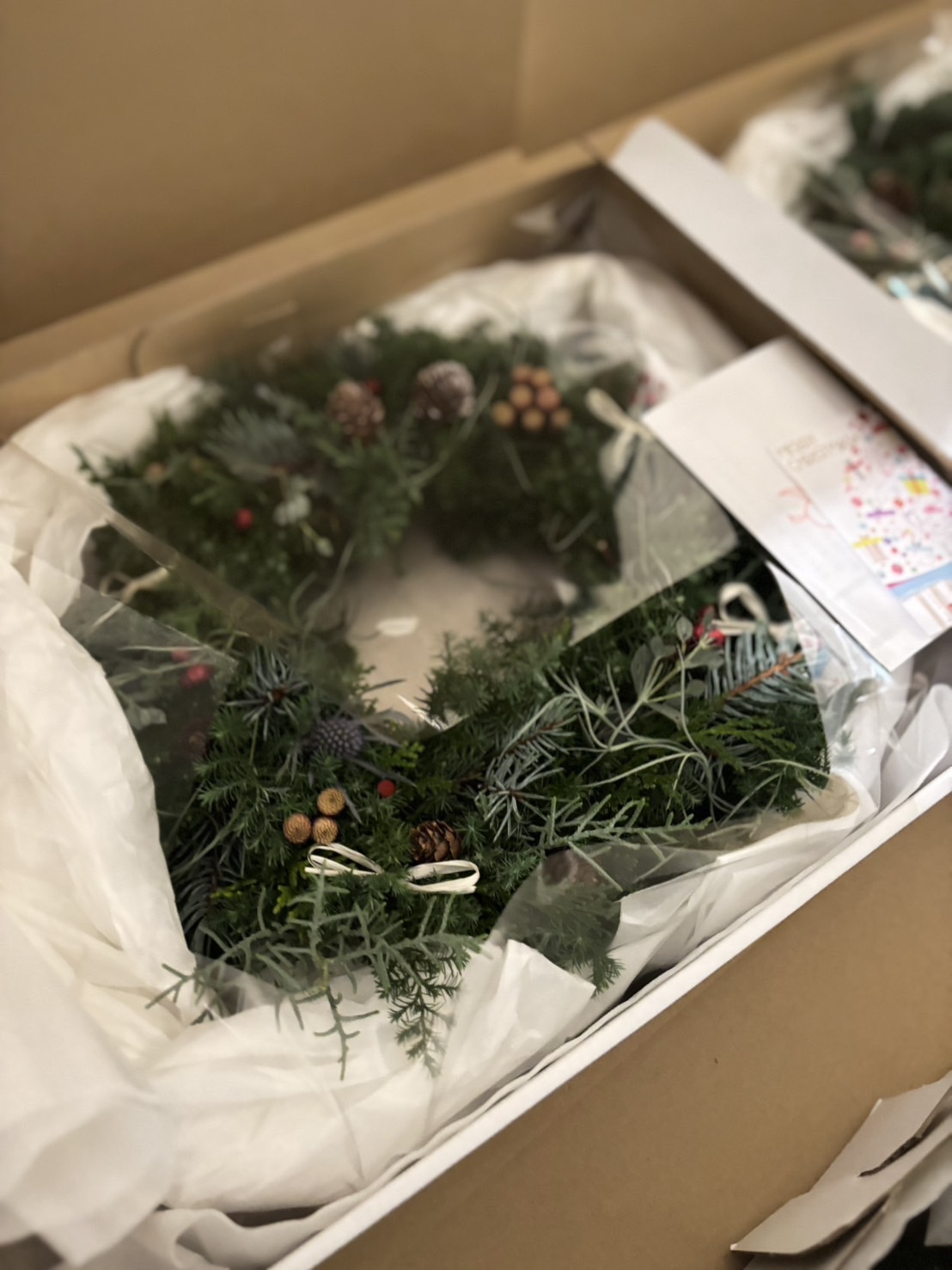 高島屋オンラインで大人気の「生花で作るクリスマスリース」は、フレッシュなグリーンでスタッフがひとつひとつ手作りしています☺
