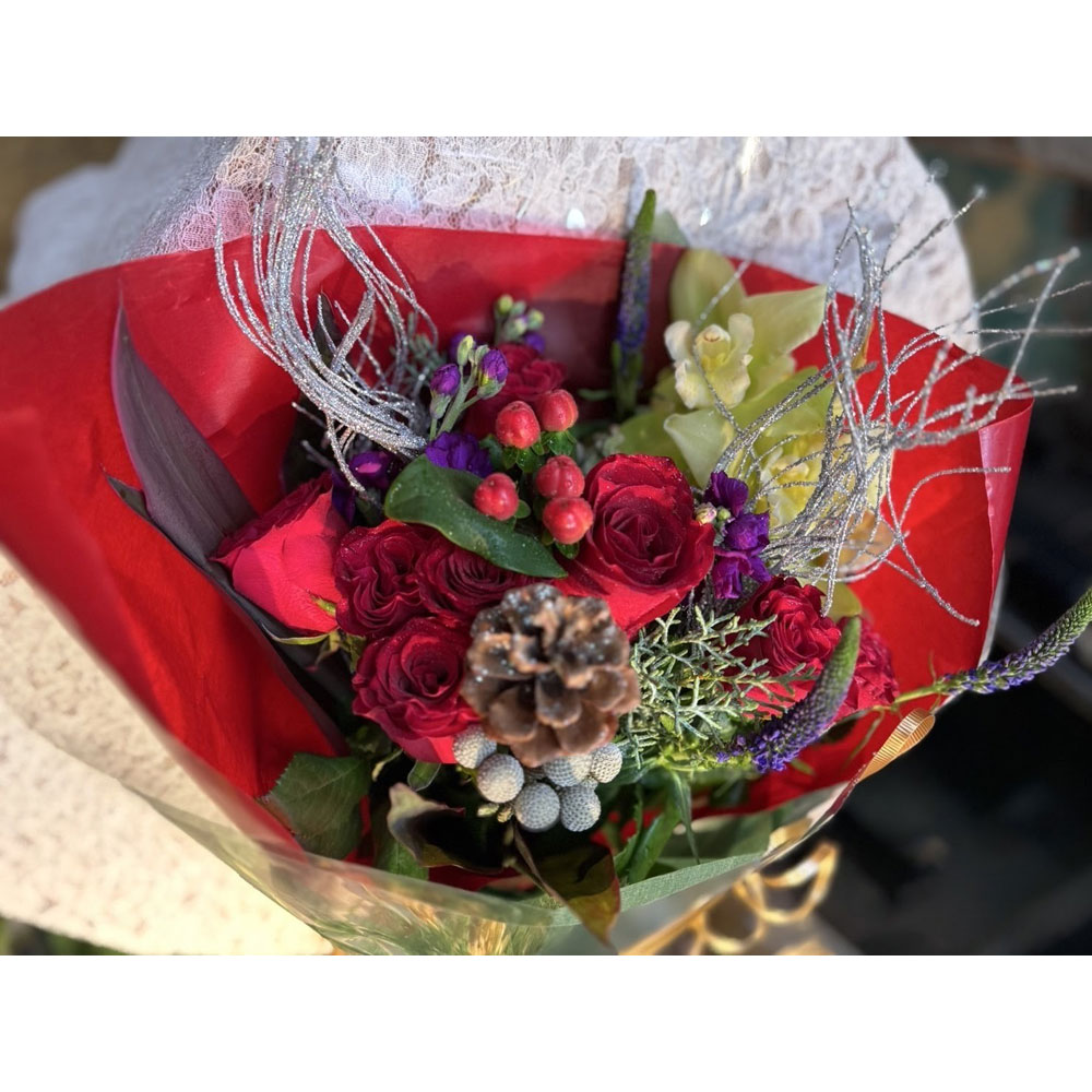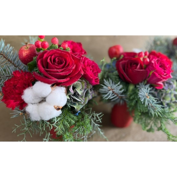 他にも赤バラやコットンでクリスマス感たっぷりのアレンジメントや花束などご用意しております