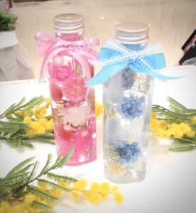 ハーバリウムとは植物標本を意味し、ガラス瓶の中にプリザーブドフラワーやドライフラワーを入れ、オイルに浸したもののことです🌸
